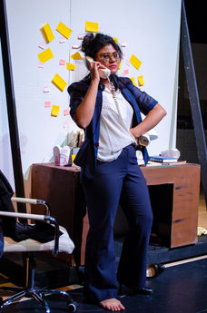 In directing “The Idiot Box,” I focused especially on the idea of letting the “hard things” into the world. As we progressed through the play, the set, costumes, and physical palette of the actors became less sterilized, less polished, and more real. Similarly, the characters themselves became less sterilized in how they acted towards each other and in response to each other. “Innocent” comments that could once be brushed off started to show their sinister roots, and my actors explored their characters’ buried flaws as it started to become more and more impossible to hide their secrets. After all, life can’t just be wrapped up in a sitcom bow - and when we try to do so, our worst parts always seem to burst out of the wrapping paper.